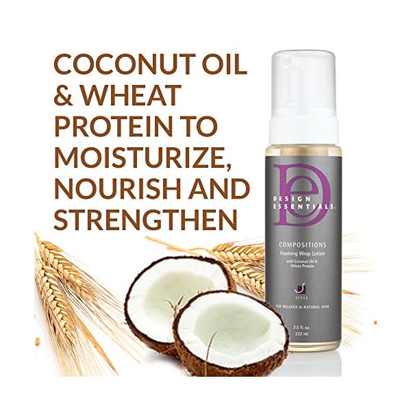 FORMULATED WITH COCONUT OIL & WHEAT PROTEIN- Two key nourishing ingredients – Coconut Oil and Wheat Protein—provide the ability to moisturize, rejuvenate, and strengthen stressed fragile hair during wet-setting. All Design Essentials products are cruelty-free and made in the USA.