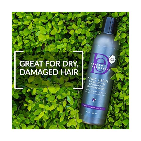 Hydrate Dry, Damaged Hair: It’s no hidden secret, maintaining hair that is strong, healthy, and beautiful requires one important thing… Moisture, Moisture, and more Moisture – and after just one use of Design Essentials Honey Crème Moisture Retention Super Detangling Conditioning