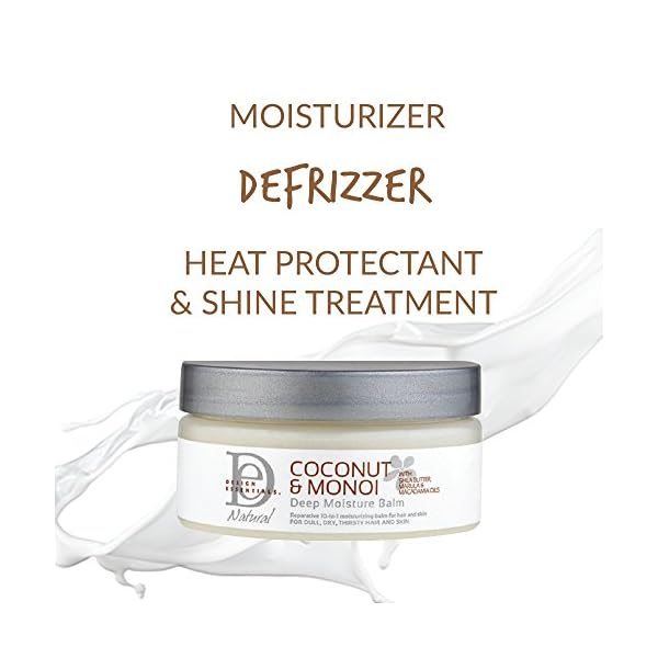 Reparative 10-in-1 Moisturizing Balm: If you struggle with breakage, dryness, heat damage, frizz, and hair that appears lackluster – Design Essentials created this must-have product just for you in mind. Our Coconut & Monoi Deep Moisture Balm is a sophisticated, 10-in-1 all natural, no preservative blend featuring Shea Butter and ten of the most exotic and efficacious oils for repair, strength and shine. Check it out for yourself: