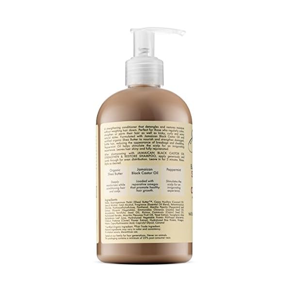 A strengthening conditioner that detangles and restores moisture without weighing hair down. It leaves hair shiny and fully rejuvenated. It is formulated with Jamaican black castor oil to nourish and strengthen damaged hair.
